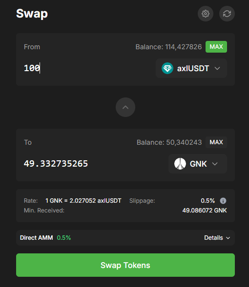 • vente et achat de GNK - contre axlUSDT - un bridge est nécessaire